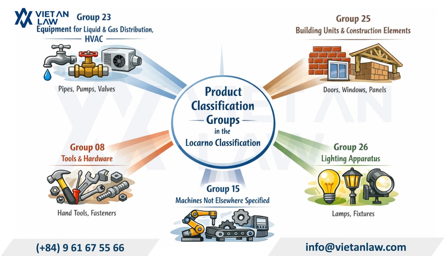 When filing an application for industrial design registration for construction materials in Vietnam, products must be categorized into groups and classes according to the Locarno Classification (applied in Vietnam). For the construction sector, products typically fall into the following groups:
