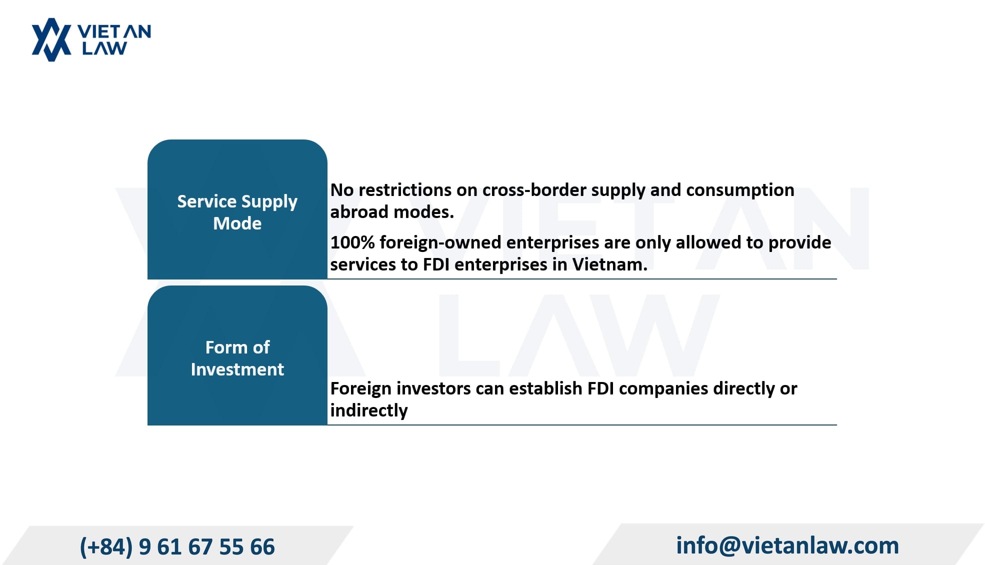 Accordingly, for cross-border supply and consumption abroad modes, this service is not restricted in Vietnam.