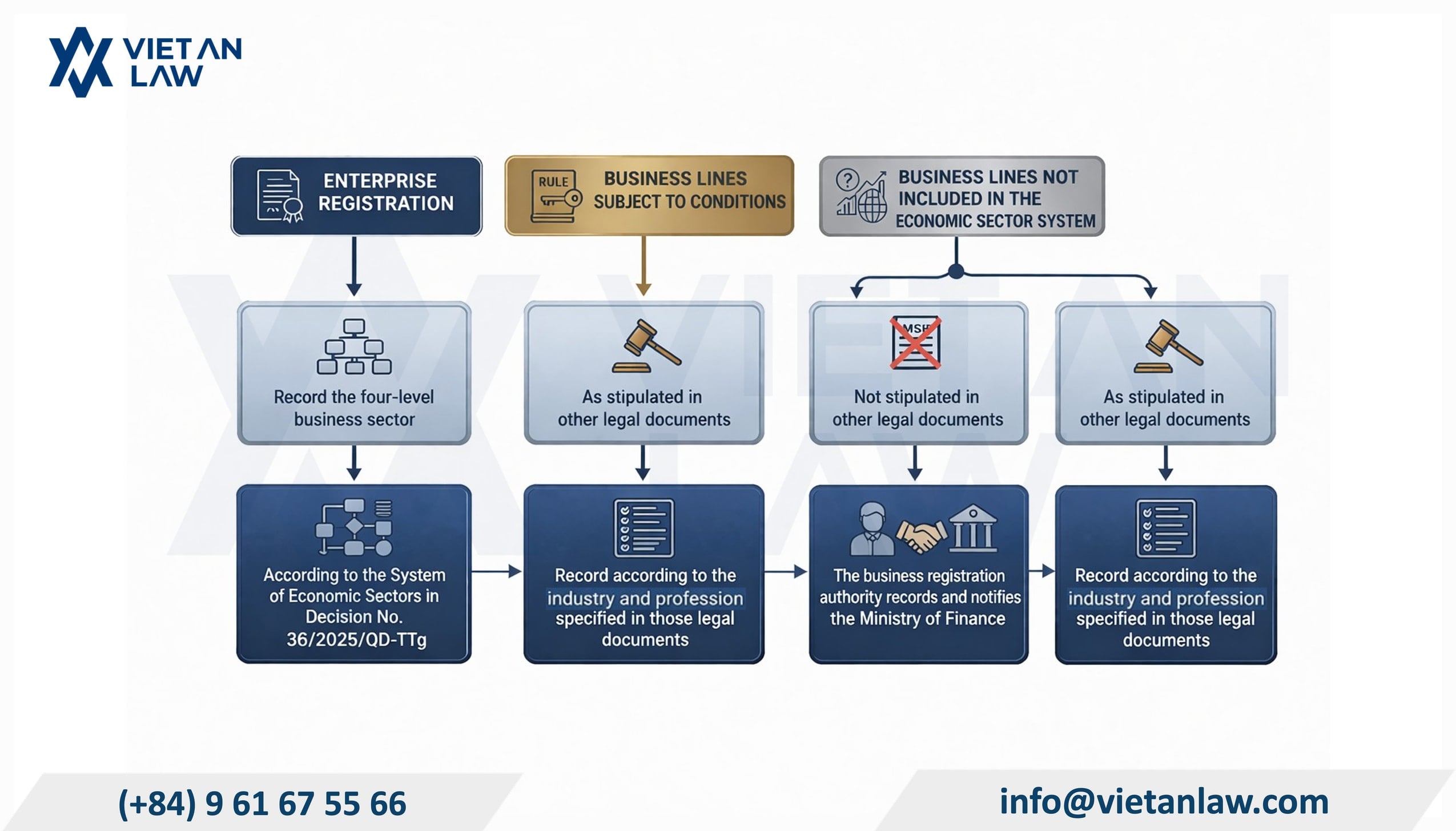The above is an analysis of Vietnam VSIC: Applying business codes in 2026. If your business is having difficulty changing its business sector according to the latest economic sector classification system, please contact Viet An Law for the fastest and most accurate support!